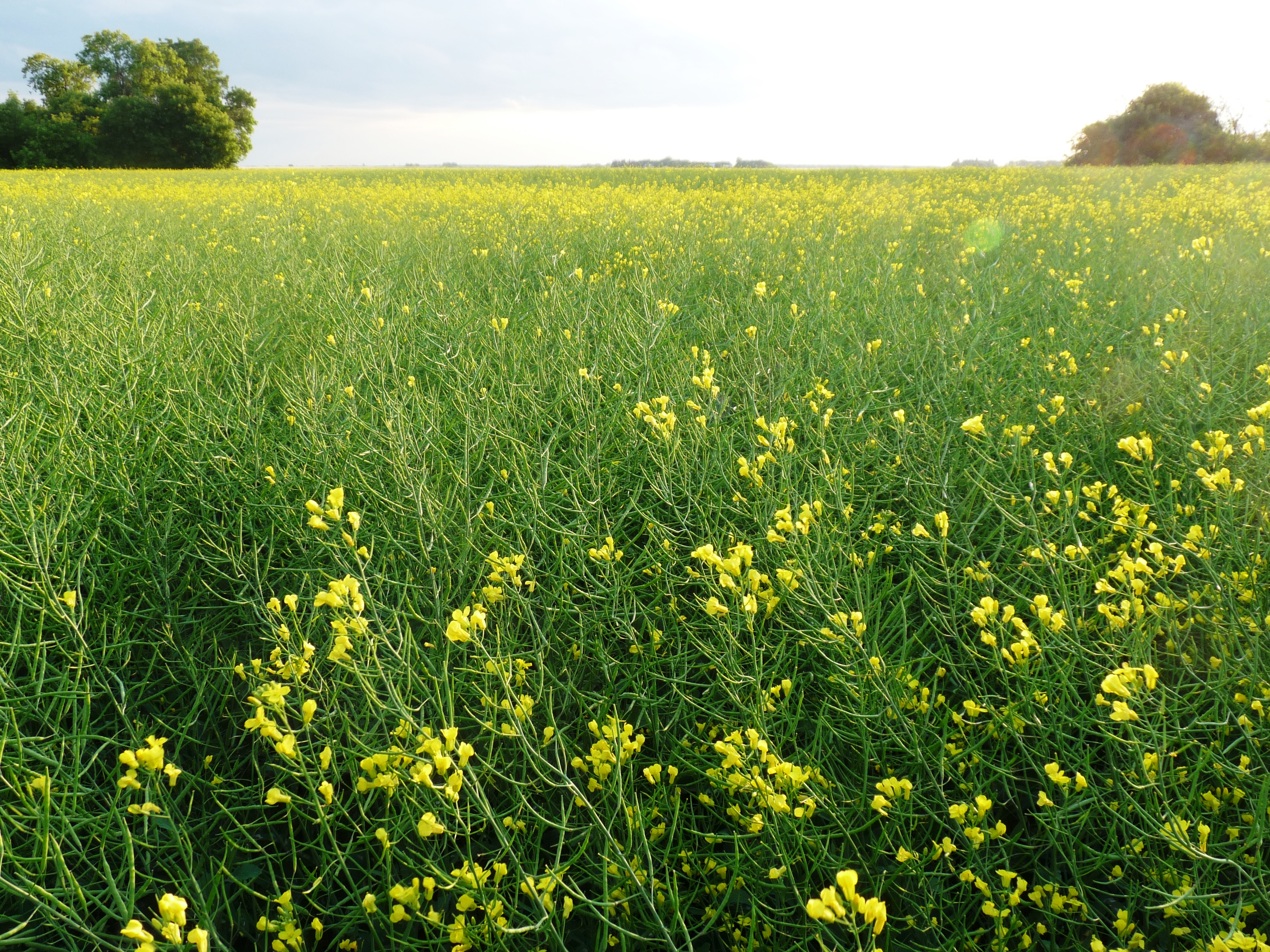 As the blossoms fade and finish all those green pods begin to fill with tiny, round seeds 1 mm. in diameter. When ready to harvest the canola plants will fade from green to a light yellow-straw colour.
