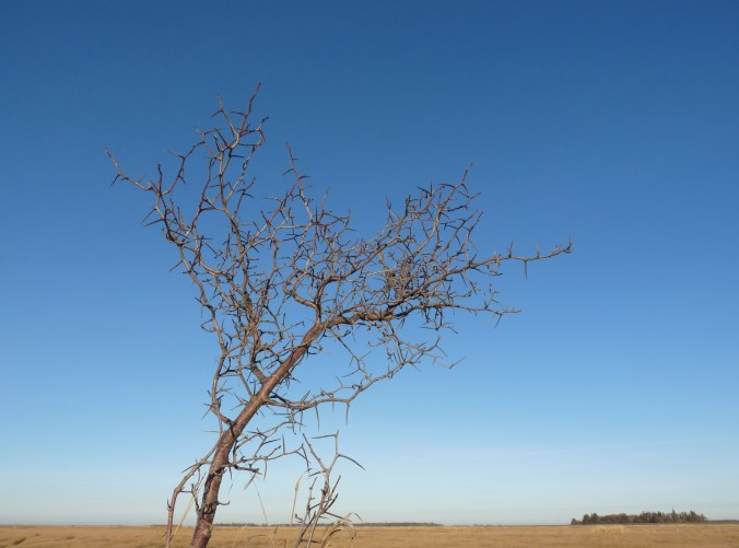 A lone Hawthorne tree on the edge of our old cattle pasture. Can you tell the prevailing winds are from the west? And is it just me or does the outline of the branches appear to form a heart?