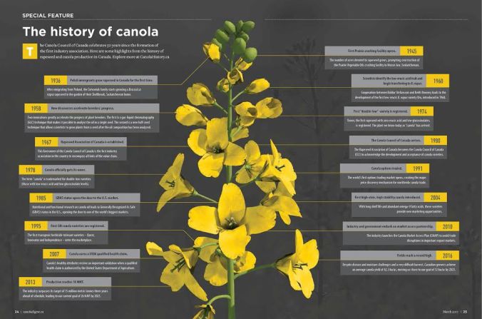 Earlier this year, our local arts centre asked for exhibit ideas for their boardroom gallery. Considering 2017 is canola’s 50th anniversary, I suggested a display of pictures, products and facts to celebrate. It was built around a blog post from last July entitled, Simply Canola, and inspired by the Canadian Agriculture and Food Museum in Ottawa. The museum is commemorating Canada’s 150th birthday and Canola’s 50th anniversary with a nation-wide travelling exhibition, “Canola: A Canadian Story of Innovation” as well as an on-site exhibit, “Canola! Seeds of Innovation.”