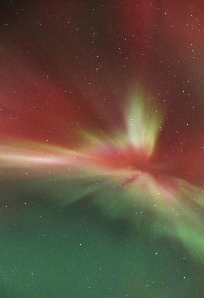 On November 11th & 12th, 2025 a massive G4 Geomagnetic Solar Storm (scale is G0 to G5) created a phenomenal display of the Northern Lights. The sky was so bright, the reds so vivid, even to the naked eye. Light pollution within city limits could not dim the colourful dance. If the horizon wasn’t visible from where you were, all you had to do was look up. Pure magic! These are edited shots taken from our farm during those memorable evenings. My first attempt at capturing the aurora! 💚